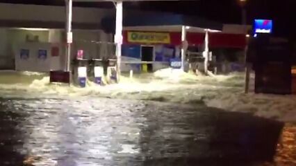 . El nivel de inundación es tan alto que casi cubre un tercio de la estación de gasolina. Una fuerte inundación ha estado ocurriendo en Ingham, ubicada en la parte norte de Queensland. La inundación comenzó el jueves 8 de marzo. Los dos en Ingham ahora están aislados porque las carreteras, incluida Bruce Highway en Mutarnee, están cortadas, y más de 200 casas se inundan cuando llega el momento de las inundaciones. Se espera que el nivel del agua disminuya la desaceleración durante la noche del viernes y aún así se mantendría a un nivel de 12 metros el sábado. Video: AP.