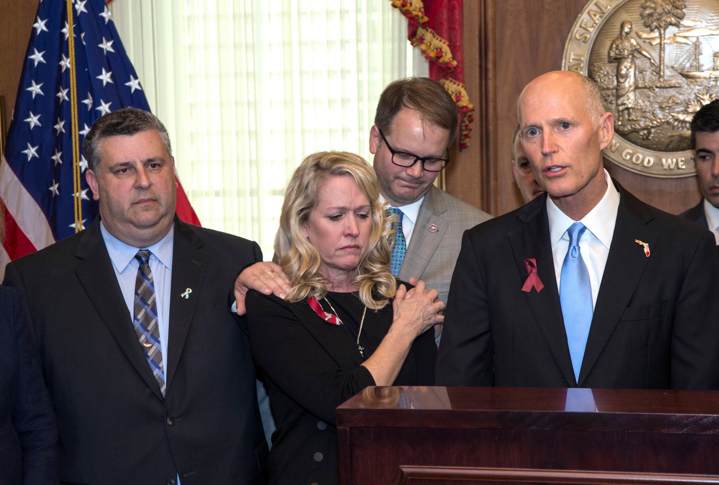 Florida, EE.UU. — Rodeado de familiares de los estudiantes que murieron en la masacre en una secundaria hace más de tres semanas, el gobernador de Florida, Rick Scott, promulgó hoy viernes una partida de $400 millones para resguardar escuelas en respuesta a la tragedia que dejó 17 muertos.