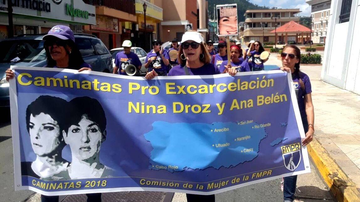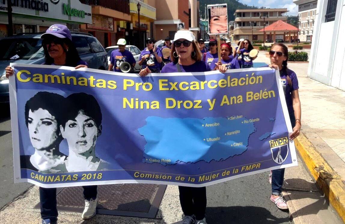 Representantes de la comisión de la mujer de la Federación de Maestros de Puerto Rico (FMPR) marchó hoy en Naranjito reclamando la libertad de las prisioneras puertorriqueñas Ana Belén Montes y Nina Droz.