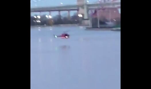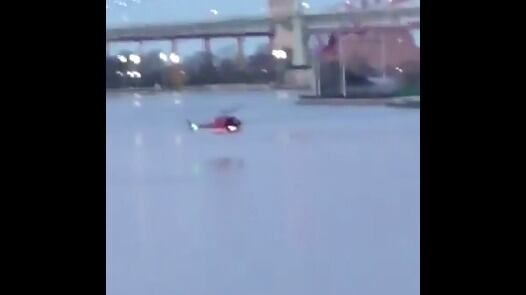 Un video publicado en Twitter captó el momento en el que el helicóptero rojo impacta la superficie y luego se vuelca cuando sus rotores golpean el agua.