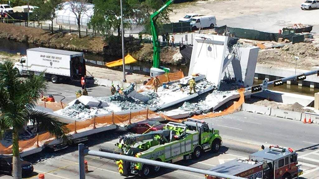 La Policía del condado de Miami-Dade, en el sureste de Florida, confirmó en su cuenta de Twitter que ascendían a seis los muertos a consecuencia del hundimiento de un puente peatonal diseñado para conectar unos edificios de apartamentos de estudiantes con el campus principal de la Universidad Internacional de Florida (FIU).