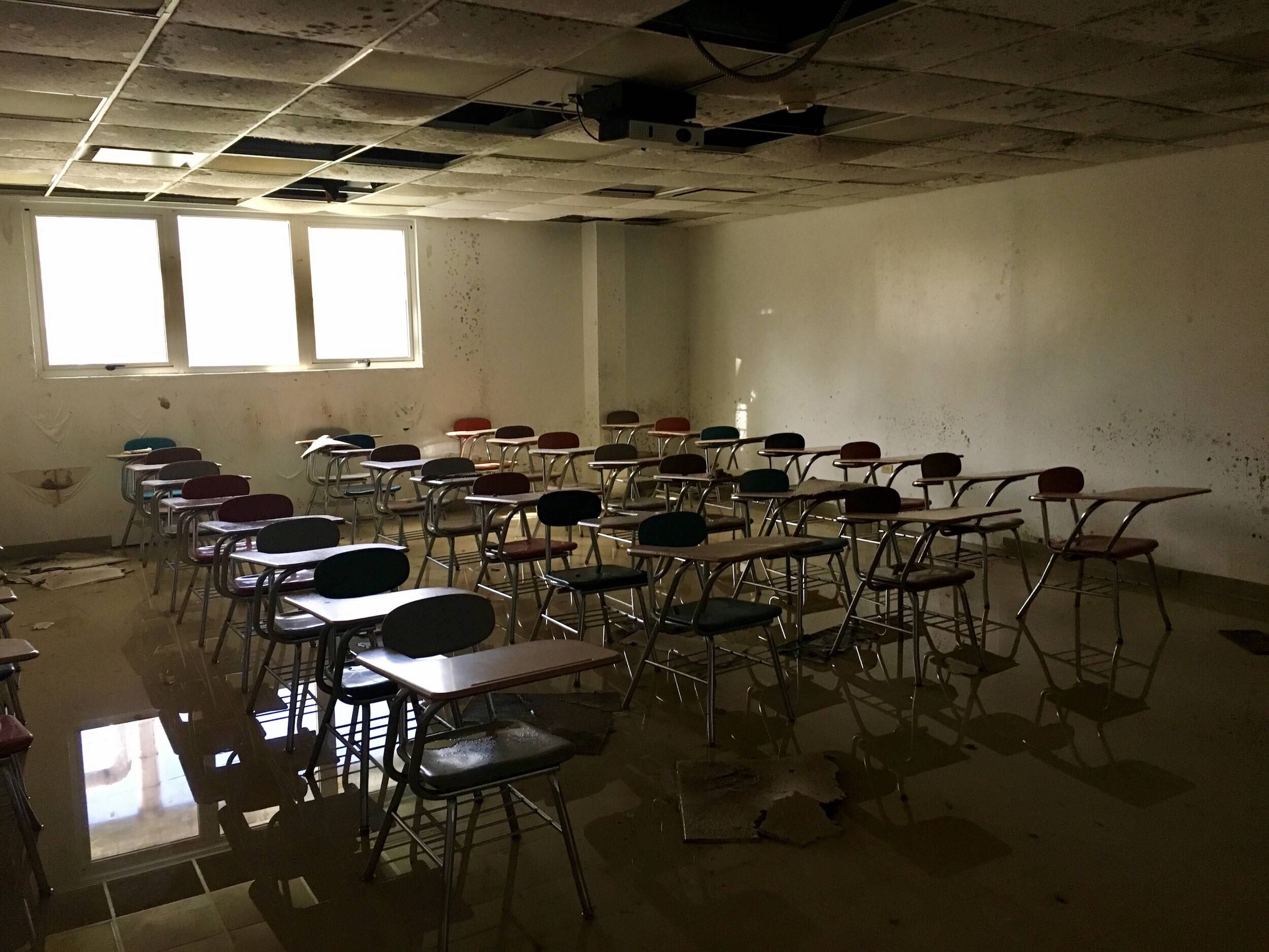 Desde que se reanudaron las clases el pasado 30 de octubre, la Escuela no cuenta con suficientes salones de clases y equipo; los cursos se ofrecen en diferentes lugares del recinto; y el profesorado no tiene oficinas para atender a sus estudiantes. El edificio que albergaba la unidad fue clausurado debido a los daños que sufrió a consecuencia del huracán María el 20 de septiembre.