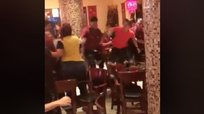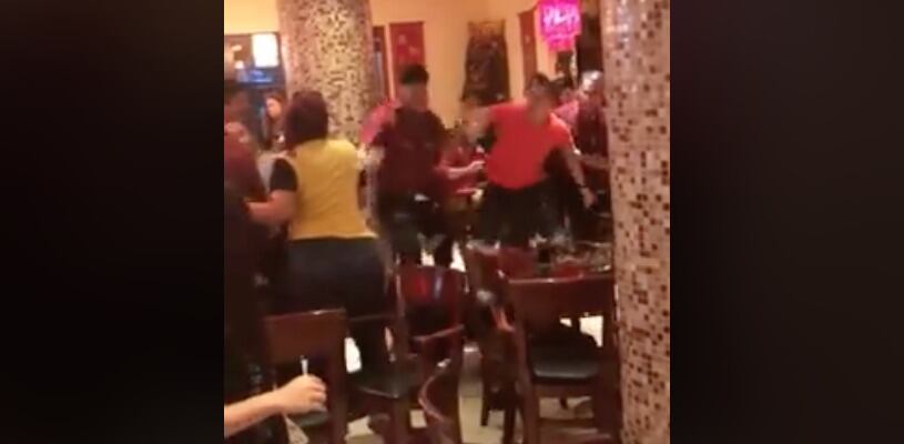 Según un video, publicado por un usuario de Facebook identificado como Edwin Manuel, se observa a varias personas, entre ellos meseros, darse fuertes golpes por razones desconocidas.