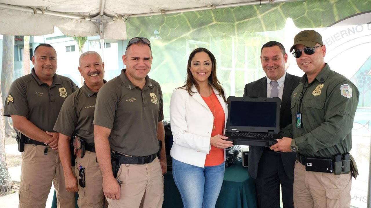 La secretaria del Departamento de Recursos Naturales y Ambientales (DRNA), Tania Vázquez Rivera, homenajeó hoy al Cuerpo de Vigilantes de su agencia, en una actividad en la que, además, les hizo entrega de una modernizada lancha de 32 pies de eslora, dos vehículos todoterreno y computadoras.