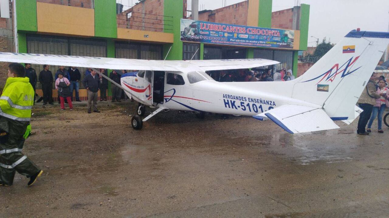 Una avioneta tipo Cessna 172 debió aterrizar por el mal tiempo en la mitad de la carretera Bogotá – Tunja, a la altura del municipio de Chocontá (Cundinamarca), en la tarde de este sábado.