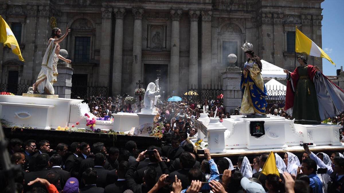 A una sola voz se coreaban consignas como “¿Quién vive? ¡Cristo!”. Cientos de personas se dieron cita frente a la iglesia madre de la Arquidiócesis de Guatemala.