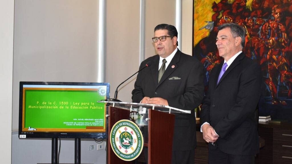 El representante Rafael Tatito Hernández y el alcalde de Isabela, Charlie Delgado Altieri, anunciaron hoy la presentación de un proyecto para que los municipios administren las escuelas.