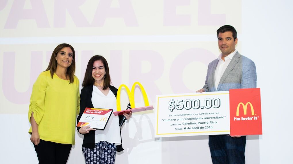 McDonald’s entregó el premio a la categoría ‘Mejor idea del futuro’ al concepto de negocio EDVO, en el marco de la celebración ‘Cumbre de Emprendimiento Universitario’.