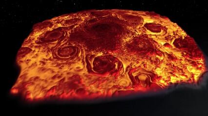 Los científicos que trabajan en la misión Juno de la NASA a Júpiter compartieron una película infrarroja tridimensional que muestra ciclones densamente empaquetados y anticiclones que impregnan las regiones polares del planeta, y la primera vista detallada de una dínamo o motor que impulsa el campo magnético de cualquier planeta más allá de la Tierra. Esos son algunos de los elementos presentados durante la Asamblea General de la Unión Europea de Geociencias en Viena, Austria, el miércoles 11 de abril. Video: YouTube NASA.