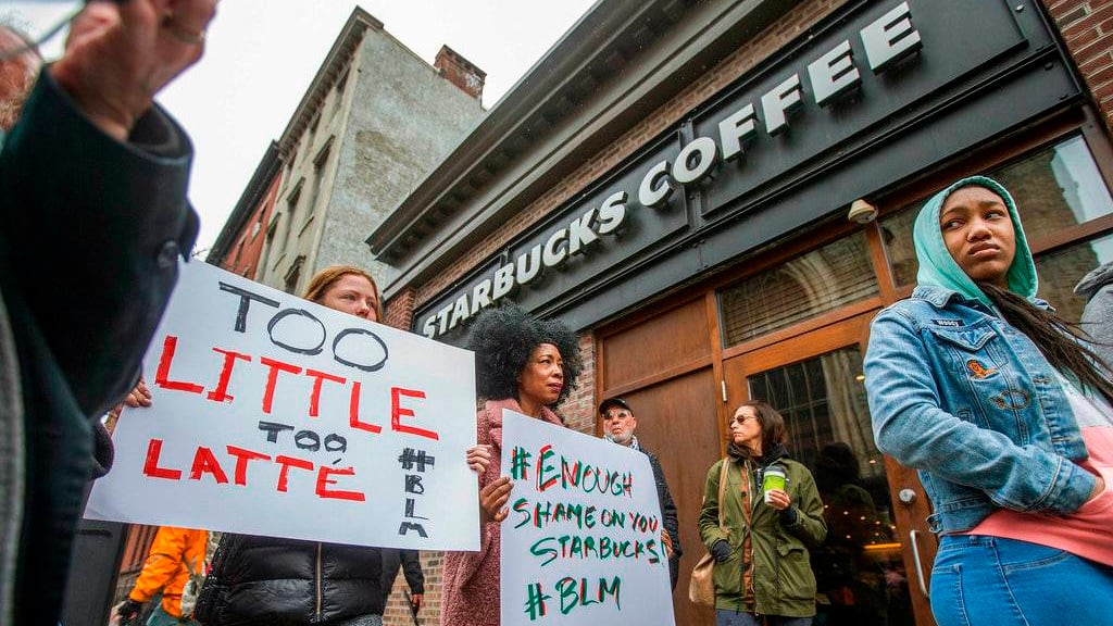 Los manifestantes llegaron poco después de las 7 de la mañana y corearon: “El café de Starbucks es contra negros” y “Vamos a clausurarlos”.