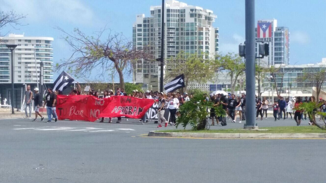 Los manifestantes marcharon desde el parque Luis Muñoz Rivera, en la isleta de San Juan, hasta el centro de convenciones, en Miramar.