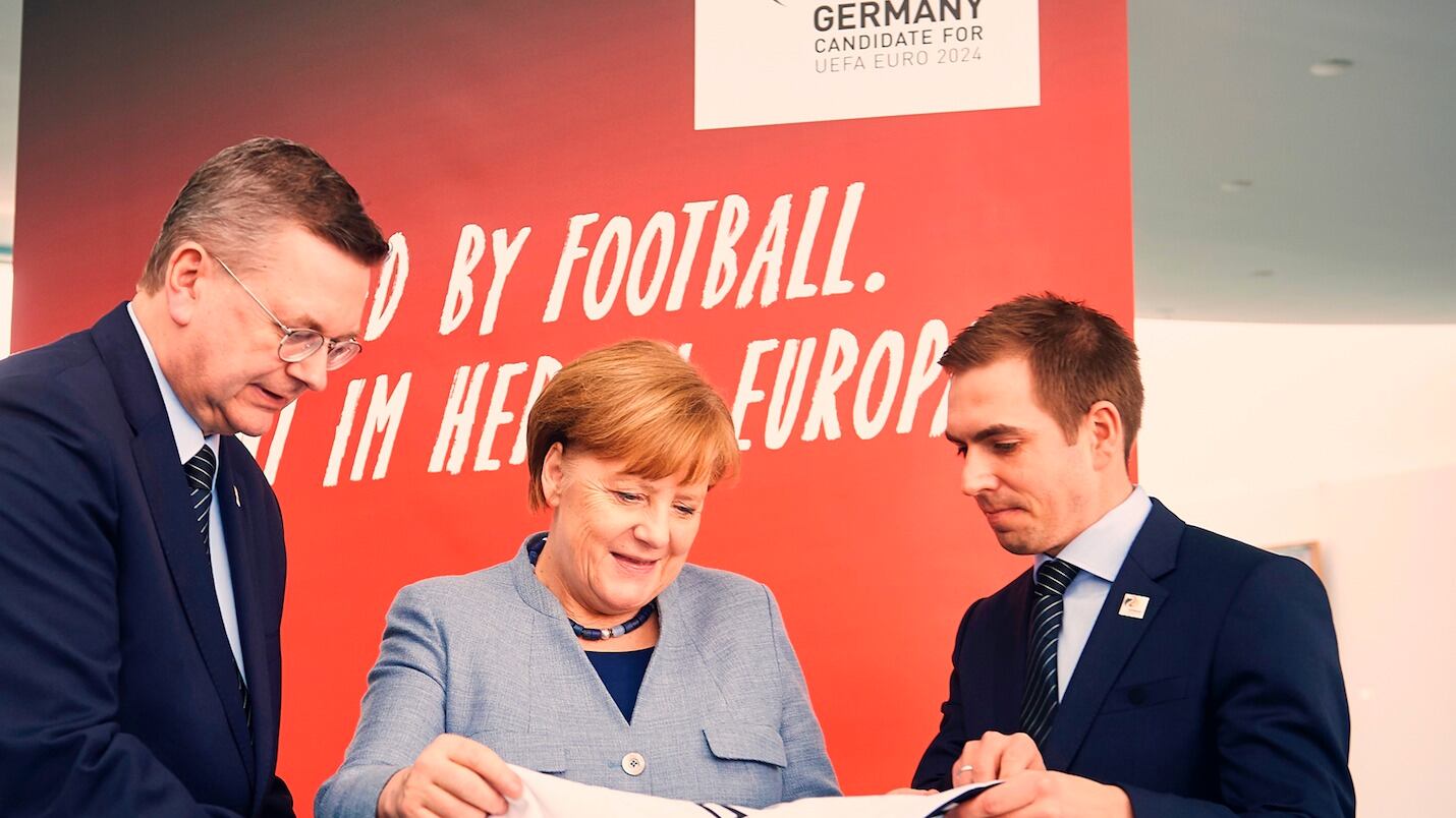 Ahora, el slogan alemán para su propuesta de albergar la Eurocopa de 2024 es “Unidos por el fútbol. En el corazón de Europa”.