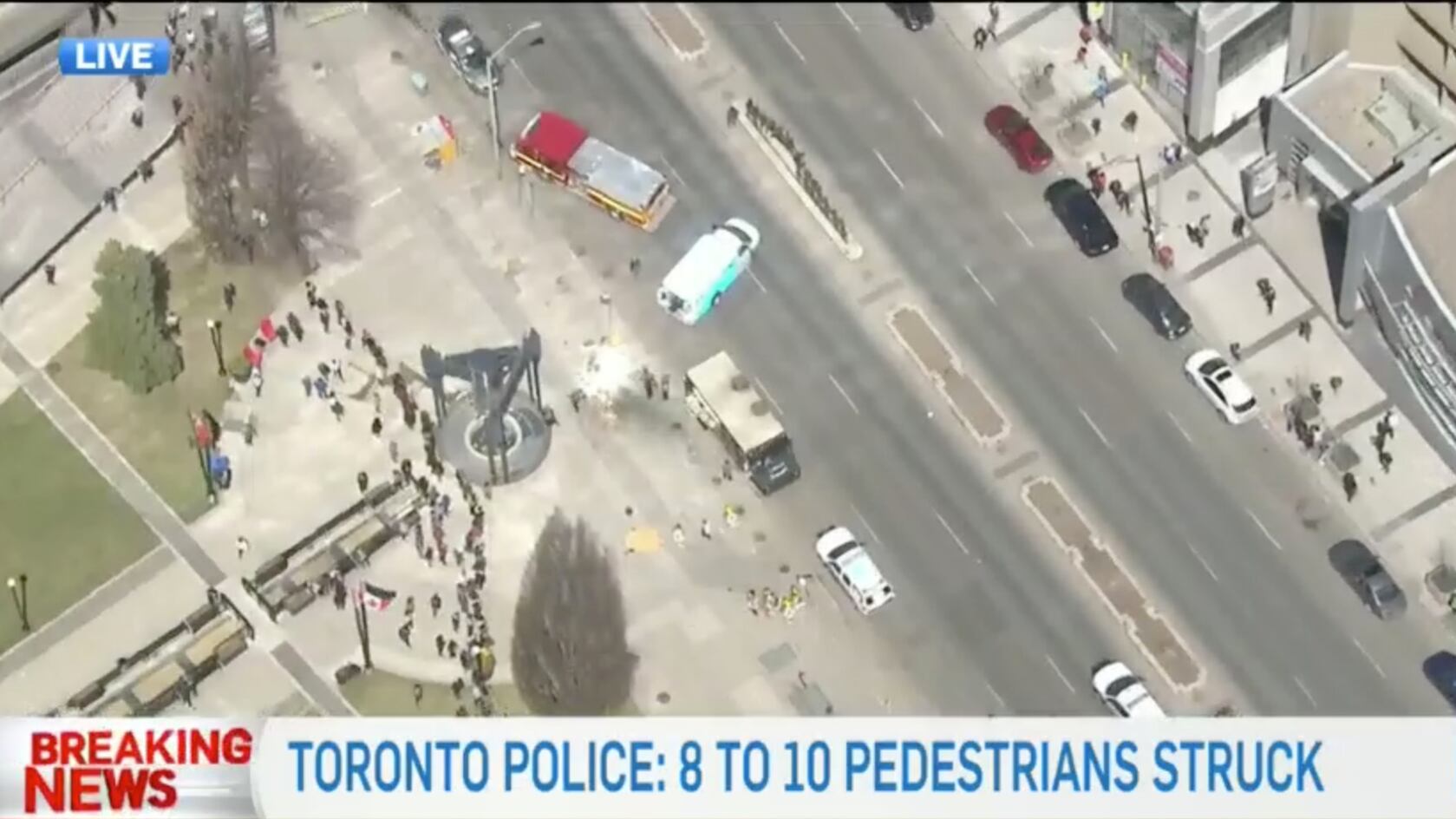 De acuerdo con estimaciones iniciales habrían entre ocho a diez personas atropelladas, se desconoce si son víctimas fatales o heridos. Sin embargo, desde el Twitter de Toronto Police OPS señalan que es muy pronto para confirmar el número de peatones atropellados.
