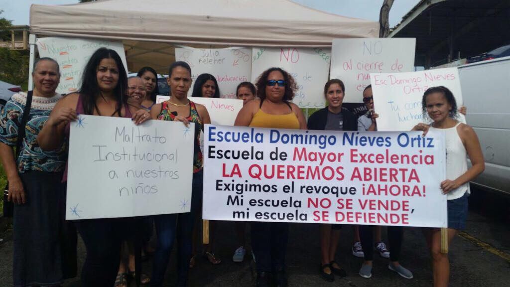 Padres y madres de la escuela Domingo Nieves Ortiz de la comunidad Palma Sola en Canóvanas realizaron hoy una manifestación en el plantel.