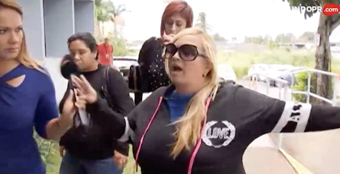 La mujer que quedó grabada en video golpeando en el rostro a su nieto en el estacionamiento de Rexville Plaza, en Bayamón, reaccionó agresiva a preguntas de la prensa, durante su llegada a la Comandancia de dicho municipio para entregarse a las autoridades.