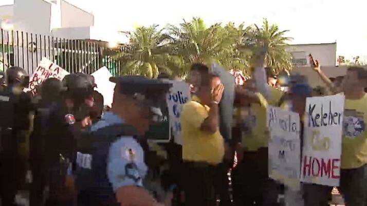 Según “Noticentro” (Wapa TV), los manifestantes alegan que policías llegaron a donde ellos para sacarlos del lugar. Alegadamente, lanzaron macanazos y gas pimienta a las personas que estaban en la dicha manifestación.