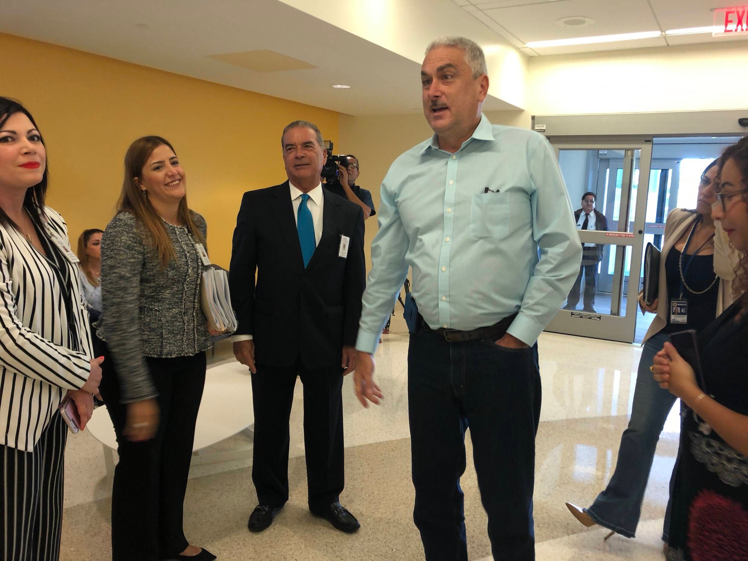 El presidente del Senado, Thomas Rivera Schatz, llegó hoy hasta el Centro Comprensivo de Cáncer (CCC) en San Juan, donde se reuniría con el director ejecutivo de la institución, el doctor Luis Clavell, así como otros miembros administrativos, para discutir cómo se ha utilizado el dinero asignado al Centro, las proyecciones de autosuficiencia fiscal y por qué no ha podido aún abrir sus puertas.