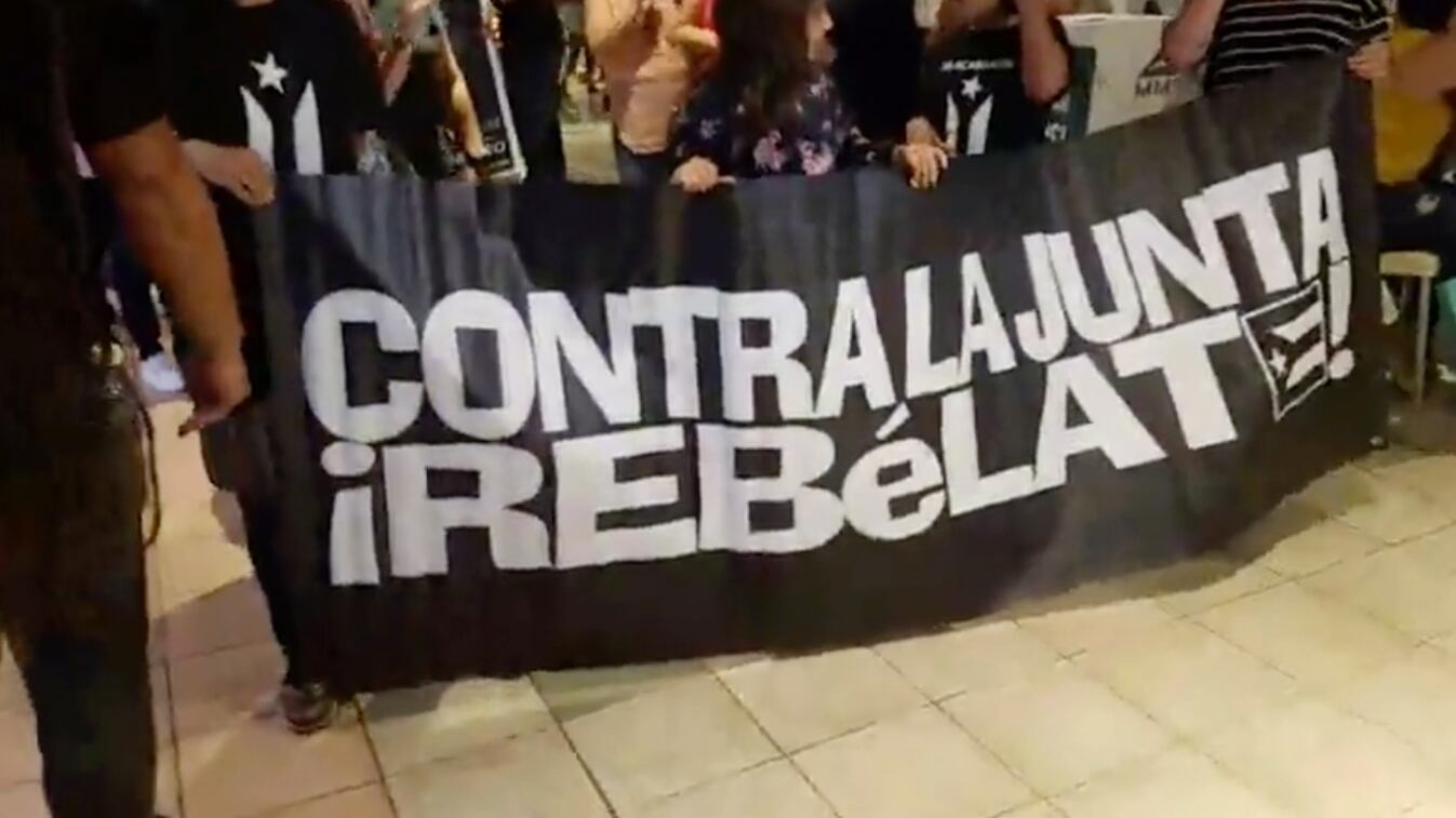 Una veintena de personas se encuentra ahora mismo protestando en contra de la Junta de Control Fiscal (JCF) y las medidas que se están imponiendo a los trabajadores del país en el centro comercial Plaza Las Américas.