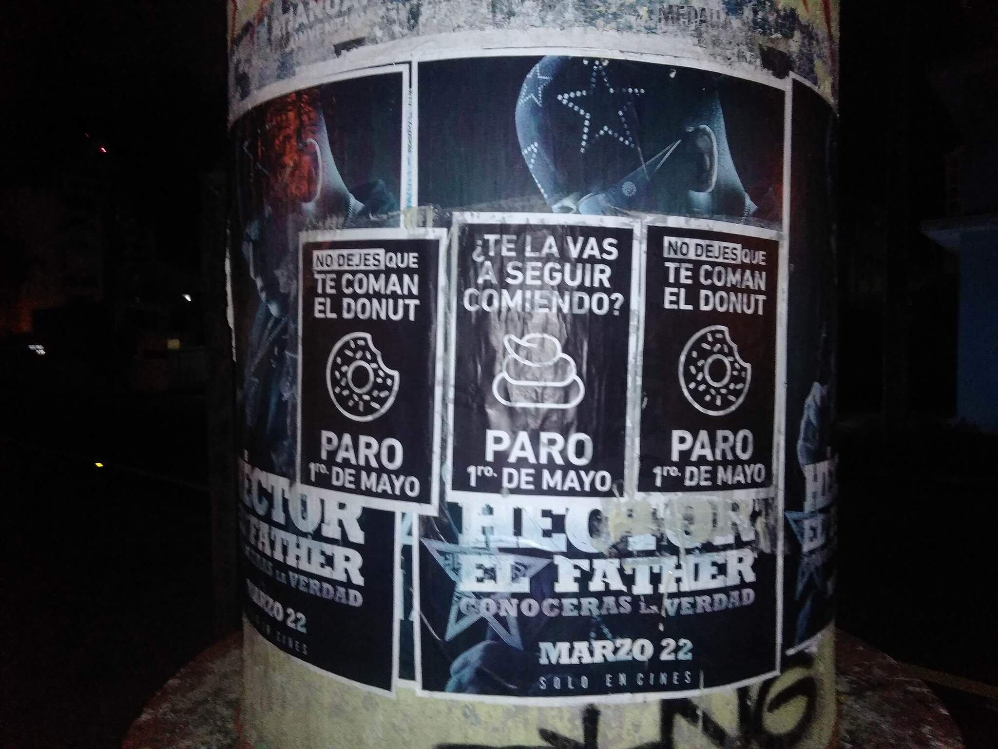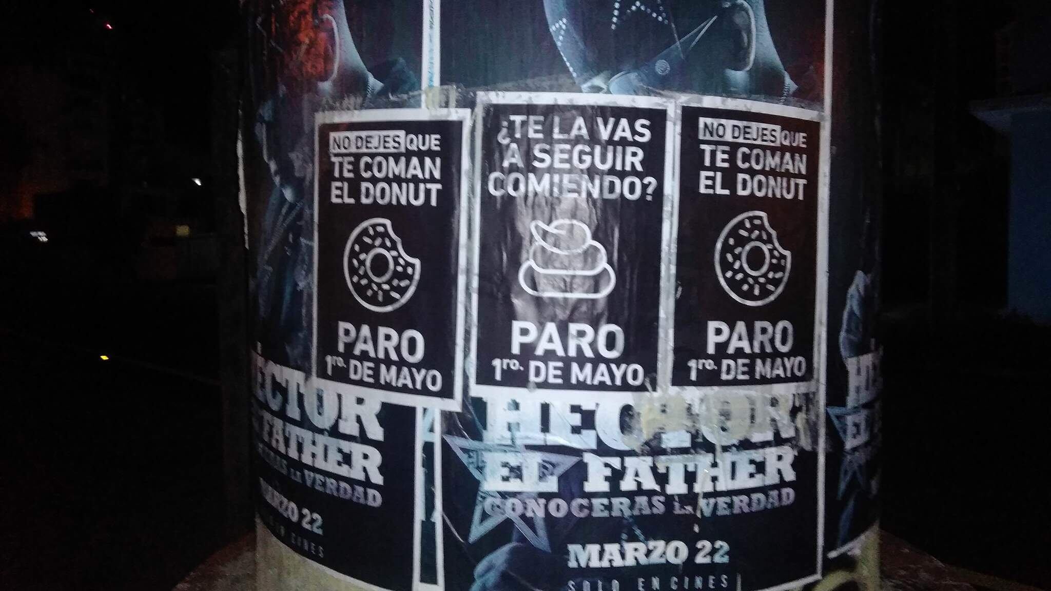 Varias zonas del área metropolitana amanecieron repletas de pasquines invitando a participar del Paro Nacional del 1 de mayo convocado por diversos sectores país. “No dejes que la Junta te coma el Donut” y “¿Te la vas a seguir comiendo?” leen los pasquines colocados en varias calle de Hato Rey, en la Milla de Oro, y en Miramar.