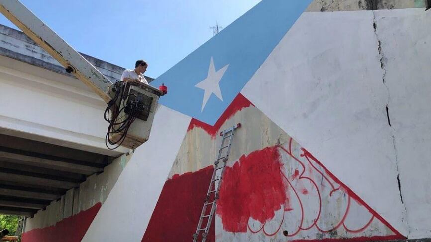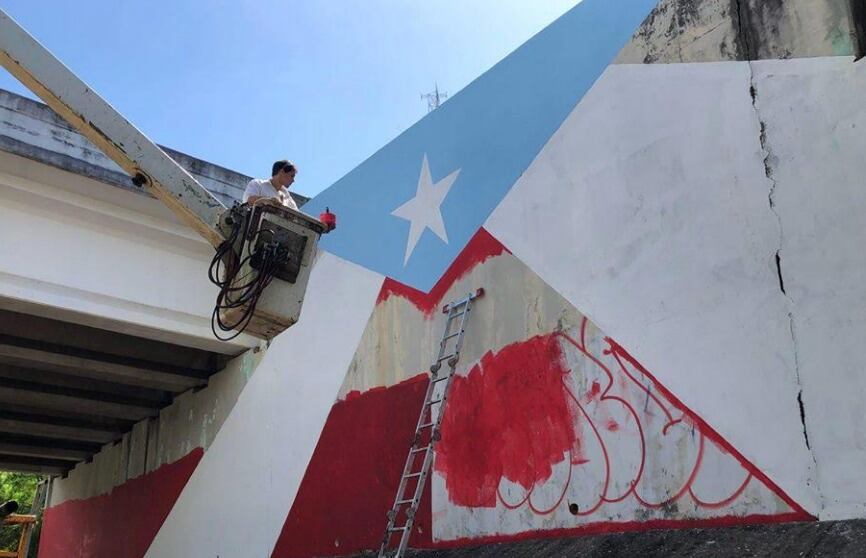 El artista gráfico Héctor Collazo, creador del concepto “78 pueblos y una bandera” completó ayer, domingo, la versión número 48 en el pueblo de Vega Alta, bajo el puente de la carretera 690 de Sabana Hoyos, camino al Balneario de Cerro Gordo. El alcalde Oscar ‘Can’ Santiago recibió a Collazo con su equipo de trabajo, como un esfuerzo comunitario para embellecer el pueblo. Vega Alta tiene además los famosos murales del Team Rubio en el centro urbano, así como el de Hamilton, en honor a Lin-Manuel Miranda y su abuelo Güisin, un recordado líder cooperativista de Vega Alta.