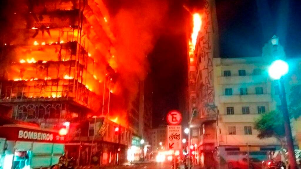 Unas horas más tarde, las llamas envolvieron la construcción de al menos 20 plantas, que se vino abajo. La televisora Globo TV, que estaba cubriendo el fuego, captó el momento.