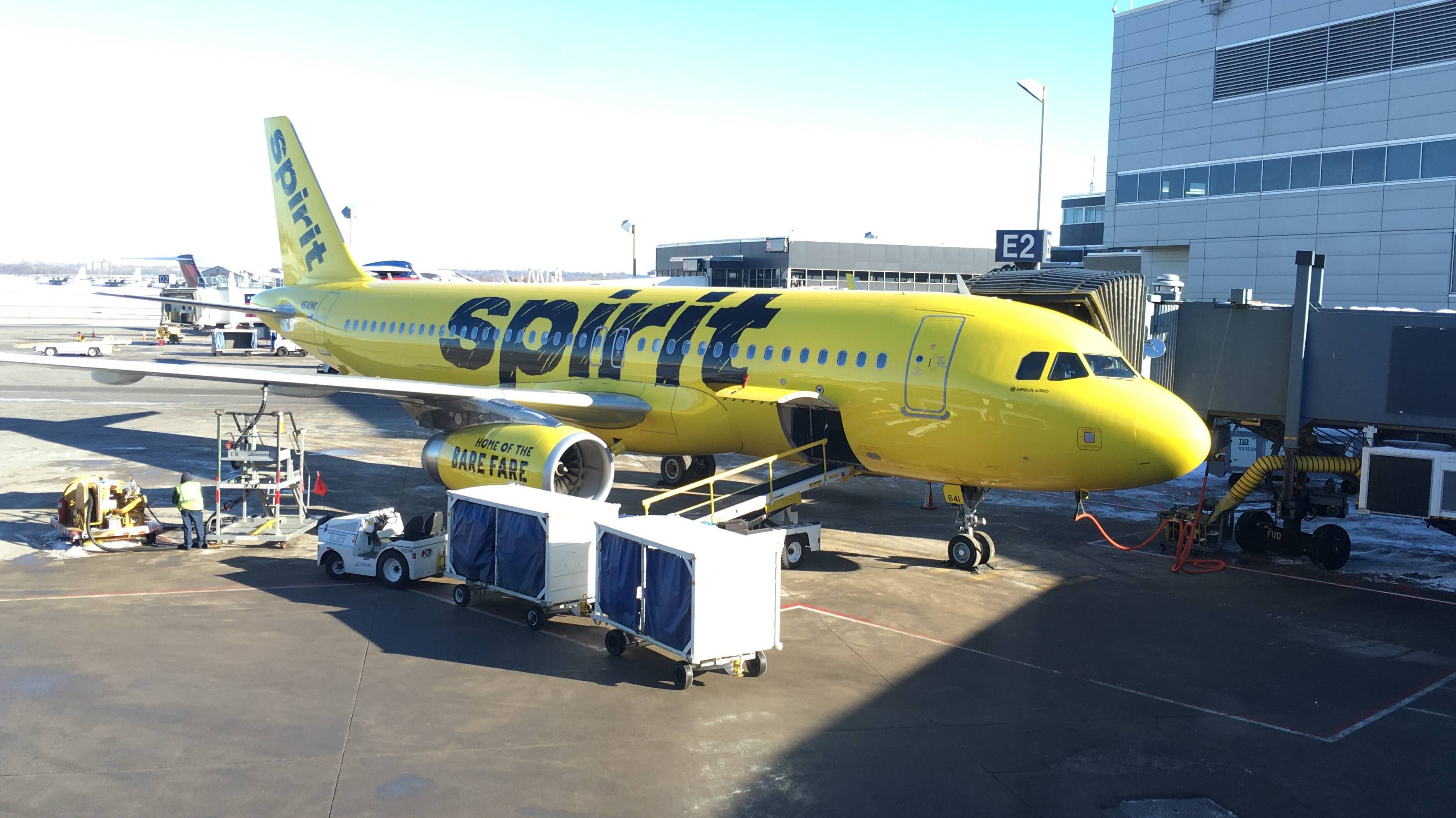 Spirit es conocida por sus precios bajos, muchas tarifas y ausencia de comodidades. La distancia entre asientos es menor que en cualquier otra aerolínea estadounidense.