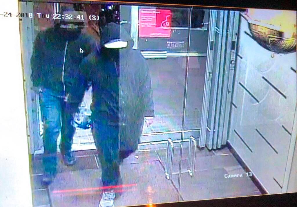 La policía de la región de Peel solicitó la ayuda del público. En un tuit describió al primer sospechoso como de unos 25 años, fornido y aproximadamente 1.80 metros (6 pies) de altura, mientras que el otro es delgado y de menor estatura. Ambos llevaban pantalones de mezclilla, sudaderas oscuras y la capucha puesta.