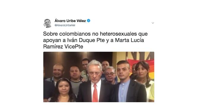 En un mensaje publicado en su red social Twitter, el expresidente Álvaro Uribe Vélez, utilizó el concepto de “colombianos no heterosexuales”, para hacer referencia a la comunidad LGBTI del país evitando llamarlos homosexuales.