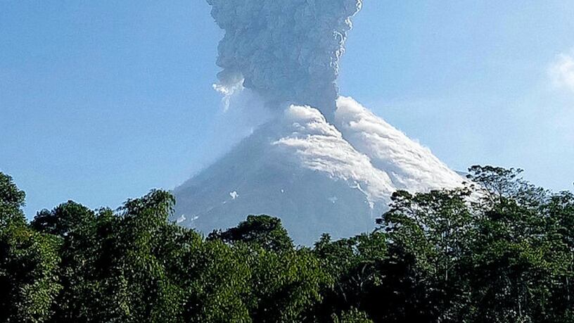 El material expulsado por la primera erupción viajó hacia el norte, lo que obligó a suspender temporalmente las operaciones del aeropuerto internacional Ahmad Yani, en Semarang, la capital de Java Central, y del aeropuerto Ade Sumarno, en Solo, dijeron las autoridades.