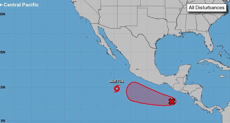 Los meteorólogos prevén que Aletta se convierta en huracán el jueves o el viernes temprano, con vientos de 119 km/h (74 millas), a medida que avanza hacia el oeste.
