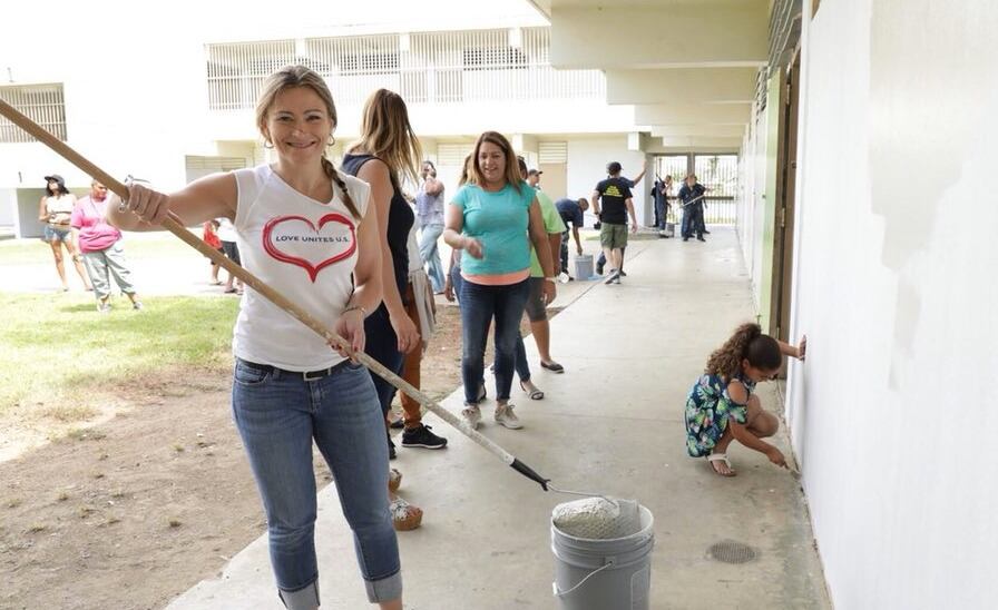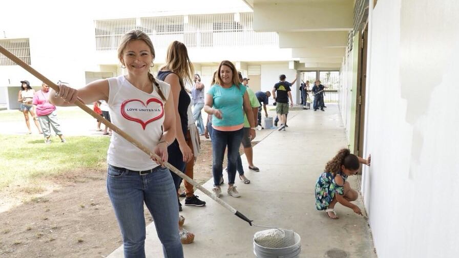 La ejecutiva de educación acudió echarle la mano a los trabajadores en la Escuela Agapito López Flores en Humacao.