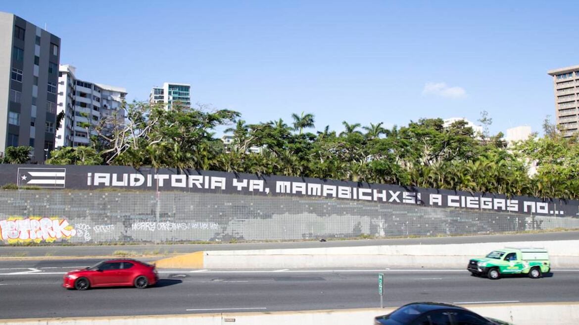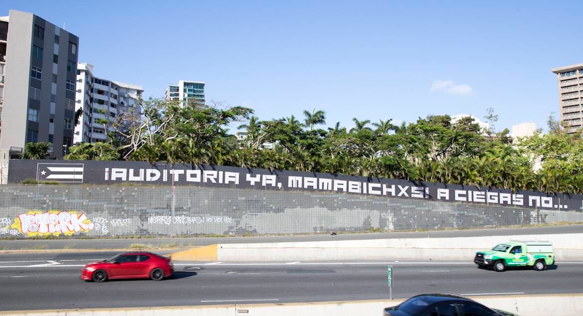 Un mural de fondo negro y letras blancas adorna en estos días la Avenida Baldorioty de Castro en San Juan, a la altura de la calle De Diego. “¡Auditoría ya, mamabichxs! A ciegas no”, dice.