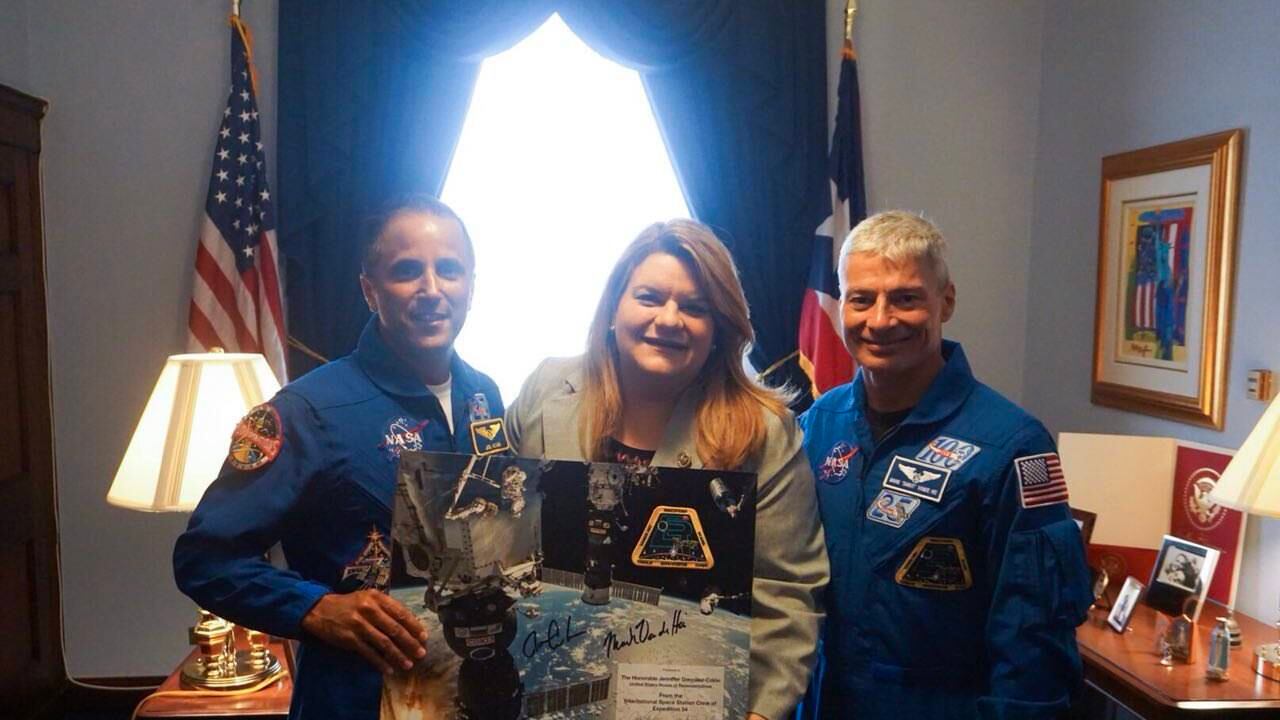 La Comisionada Residente, Jenniffer González Colón, recibió en su oficina al astronauta de origen puertorriqueño Joseph Acabá y al también astronauta Mark T. Vande Hei para discutir sus últimas misiones espaciales.