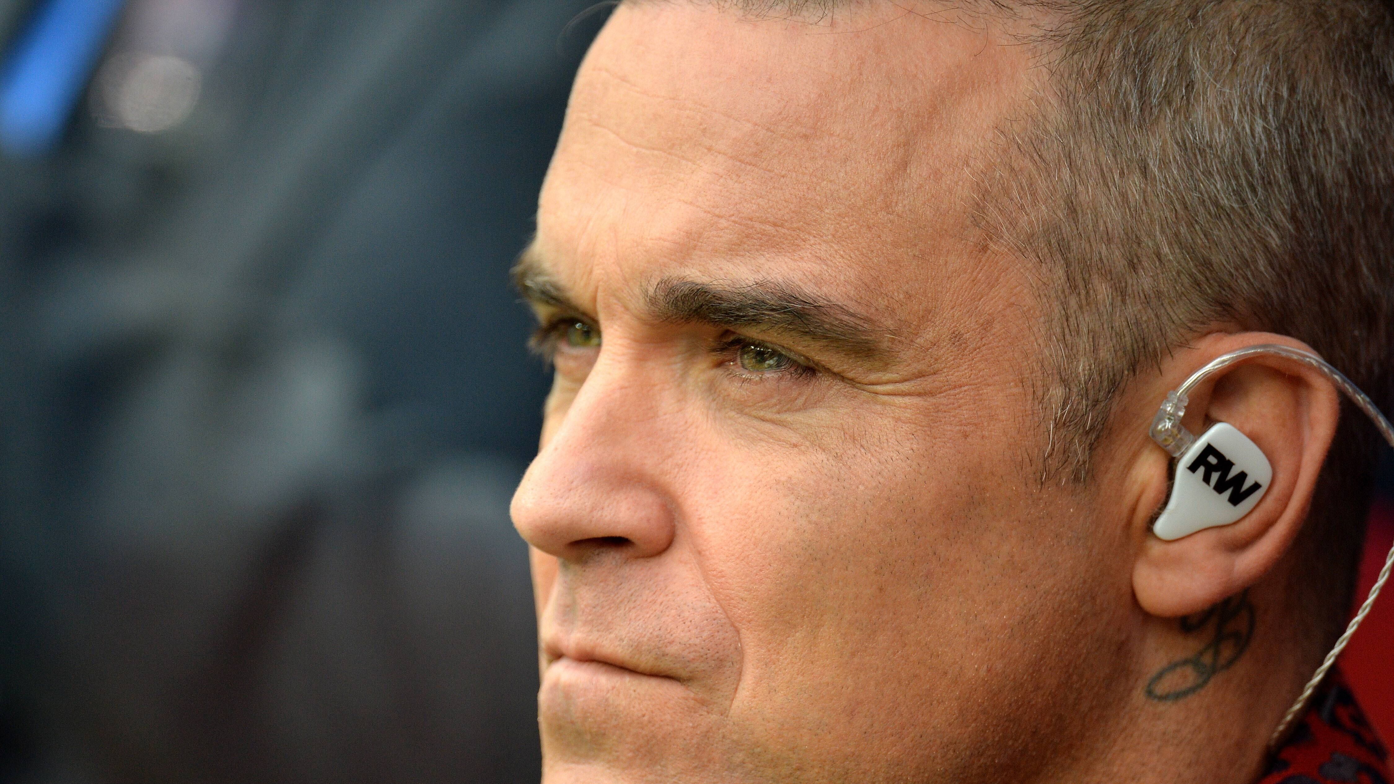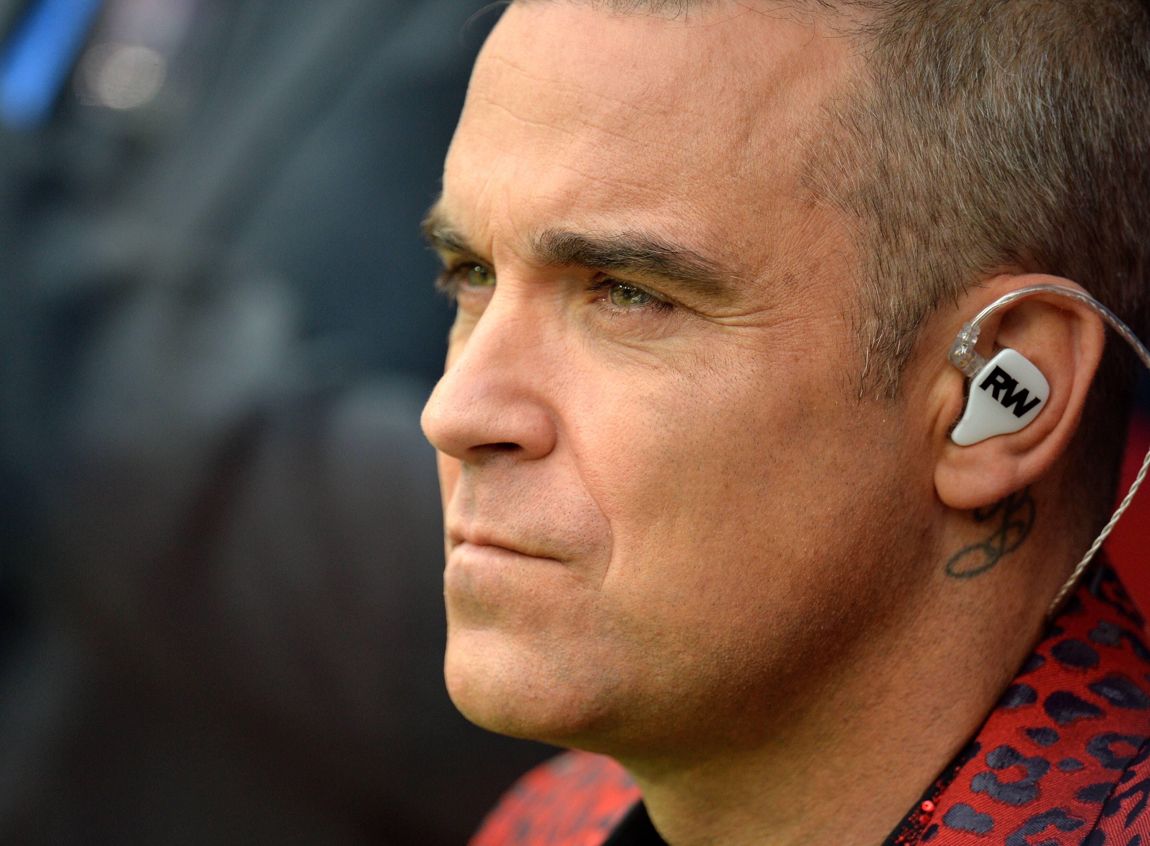 El astro británico Robbie Williams hizo una seña obscena durante su actuación del jueves en la ceremonia inaugural en la Copa del Mundo en Rusia 2018.