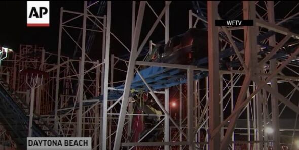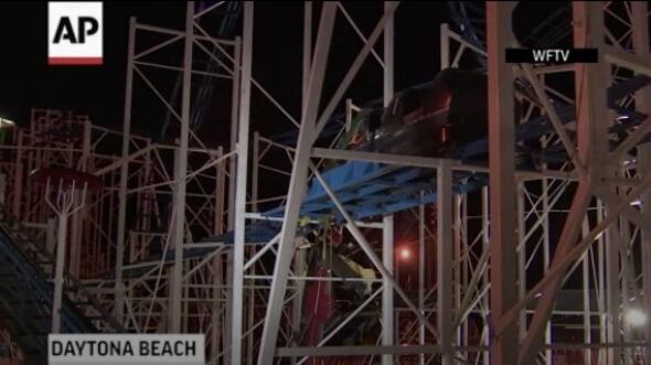 DAYTONA BEACH, Florida, EE. UU. — Dos personas cayeron 10 metros (34 pies) hasta el suelo al descarrilar un vagón de una montaña rusa, y otras ocho personas tuvieron que ser rescatadas a gran altura sobre el paseo marítimo de Daytona Beach, según las autoridades.