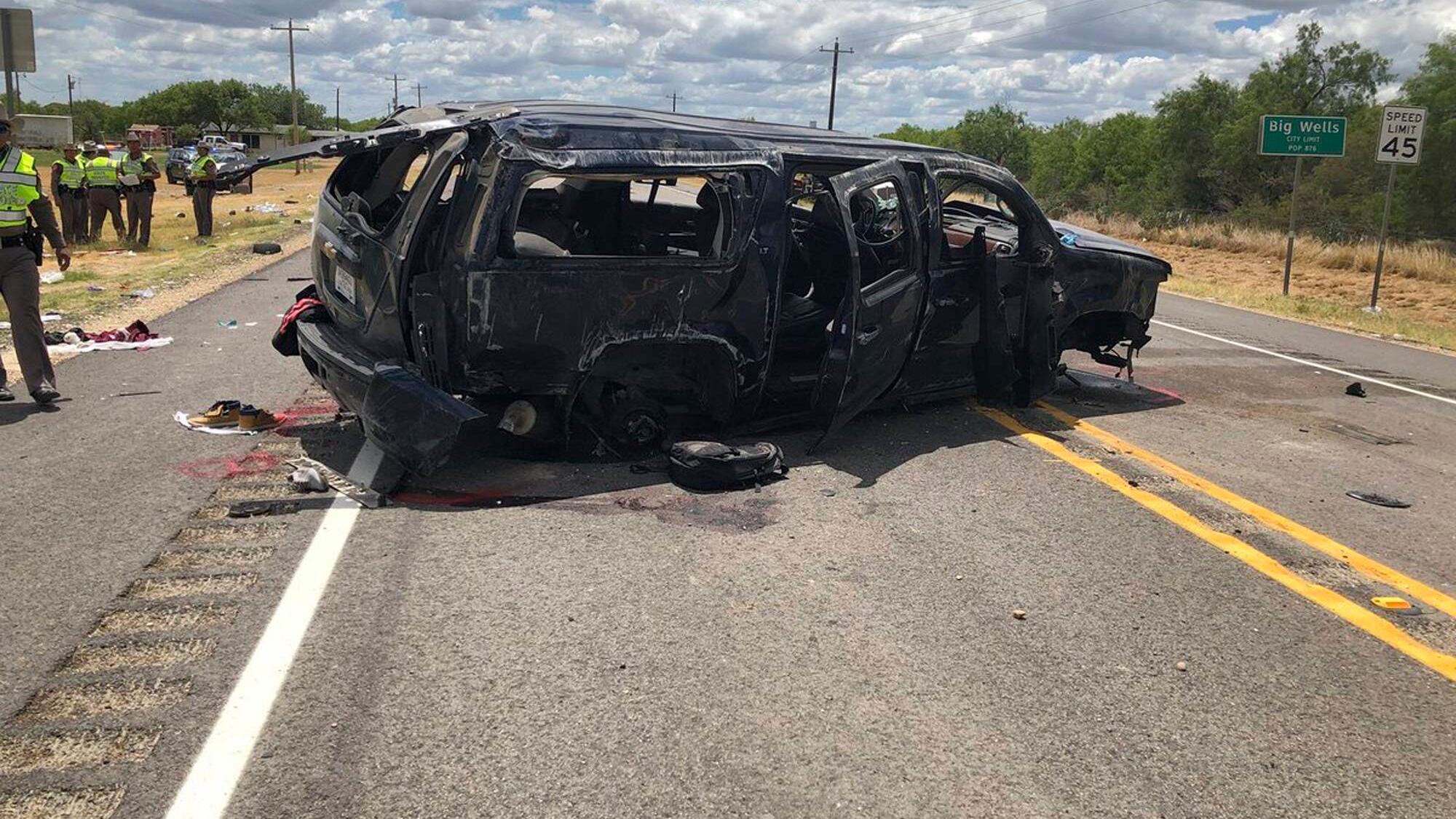 El vehículo quedó fuera de control a más de 160 kilómetros por hora (100 millas por hora) y se volcó en la carretera 85 de Texas, lo que provocó que la mayoría de sus ocupantes salieran expulsados, dijo Marion Boyd, jefe policial del condado Dimmit.