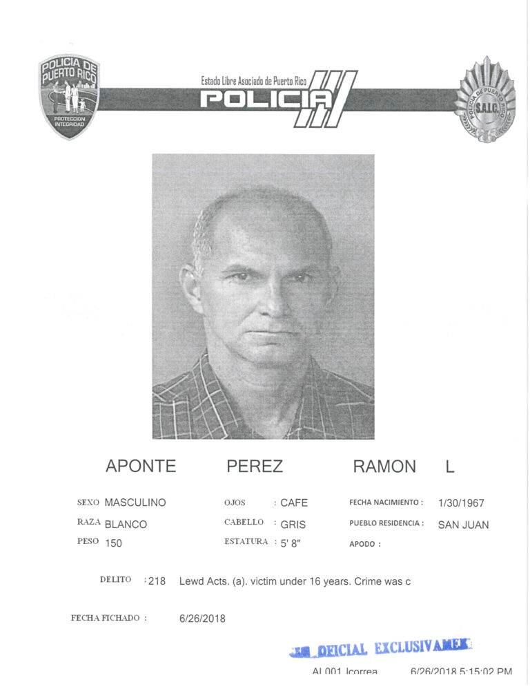 La División de Delitos Sexuales arrestó hoy y presentó denuncias contra Ramón Luis Aponte Pérez, de 51 años de edad, por cometer actos lascivos e impúdicos contra un menor de 12 años.