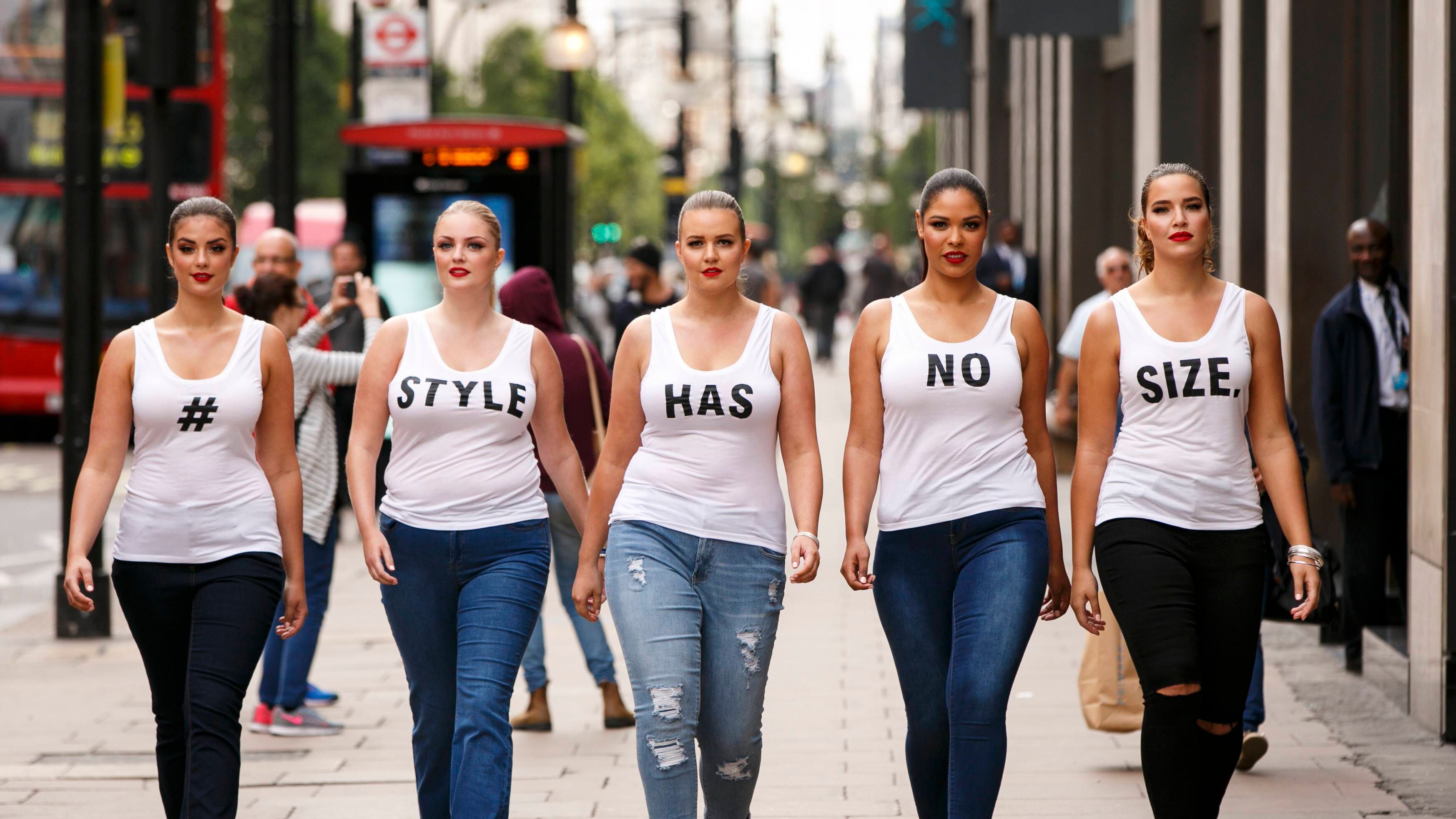 –Evitar el tamaño de vanidad e incluya la medición del cuerpo, por ejemplo, tamaño de la cadera y la cintura en las etiquetas.
