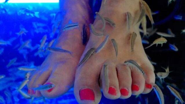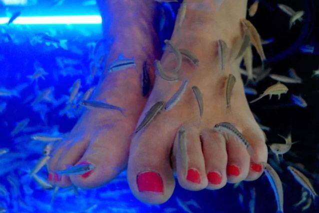 Consiste en algo así: un tipo pedicura artística en la que sumerge los pies en agua y los peces pequeños mordisquean la piel muerta. Estuvieron muy de moda por un tiempo, luego los informes de infecciones bacterianas desanimaron al púbico.