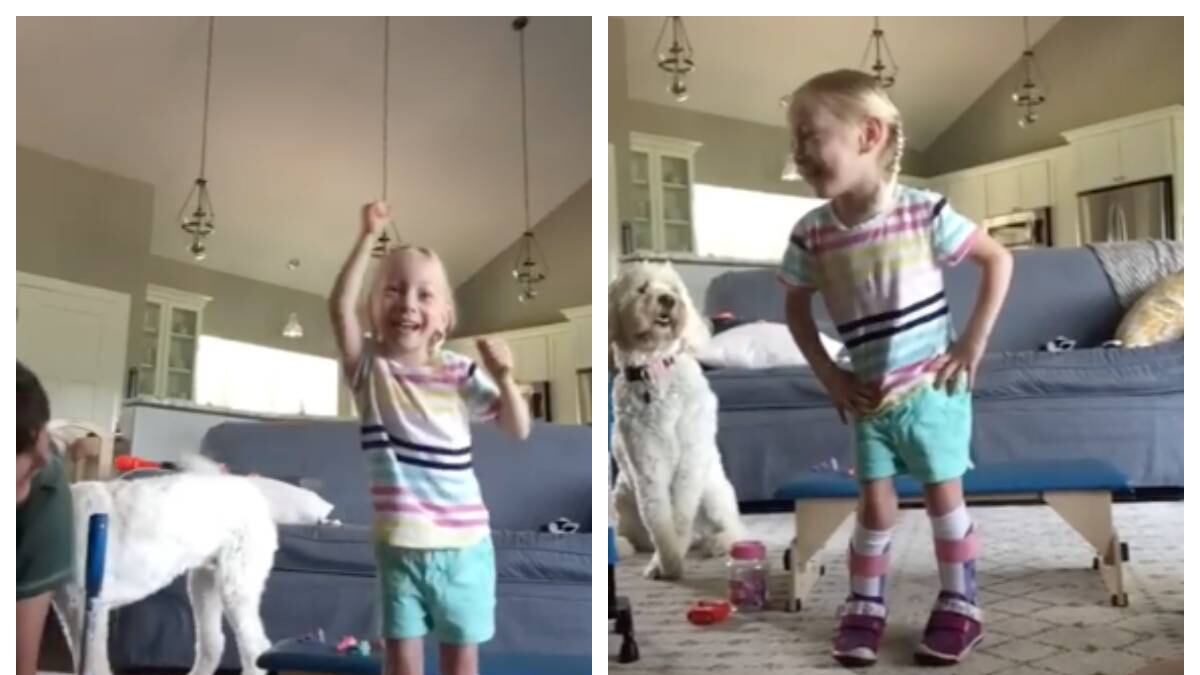 “¡Estoy caminando. Sí!”, grita la pequeña, “incluso di un gran paso”, agrega llena de emoción y deja muy claro que es “sin mis muletas”.