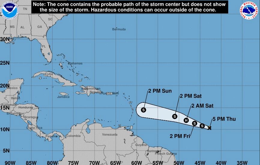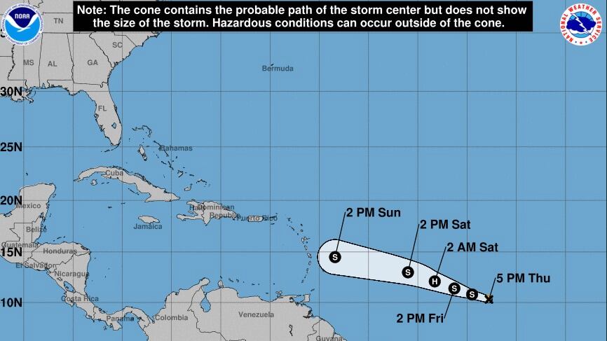 Sin embargo, el SNM dijo que se espera que el ciclón se debilite cuando se acerque a las Antillas Menores, lo que sucederá entre el domingo y la madrugada del lunes, por lo que llegaría a Puerto Rico como una fuerte onda tropical.