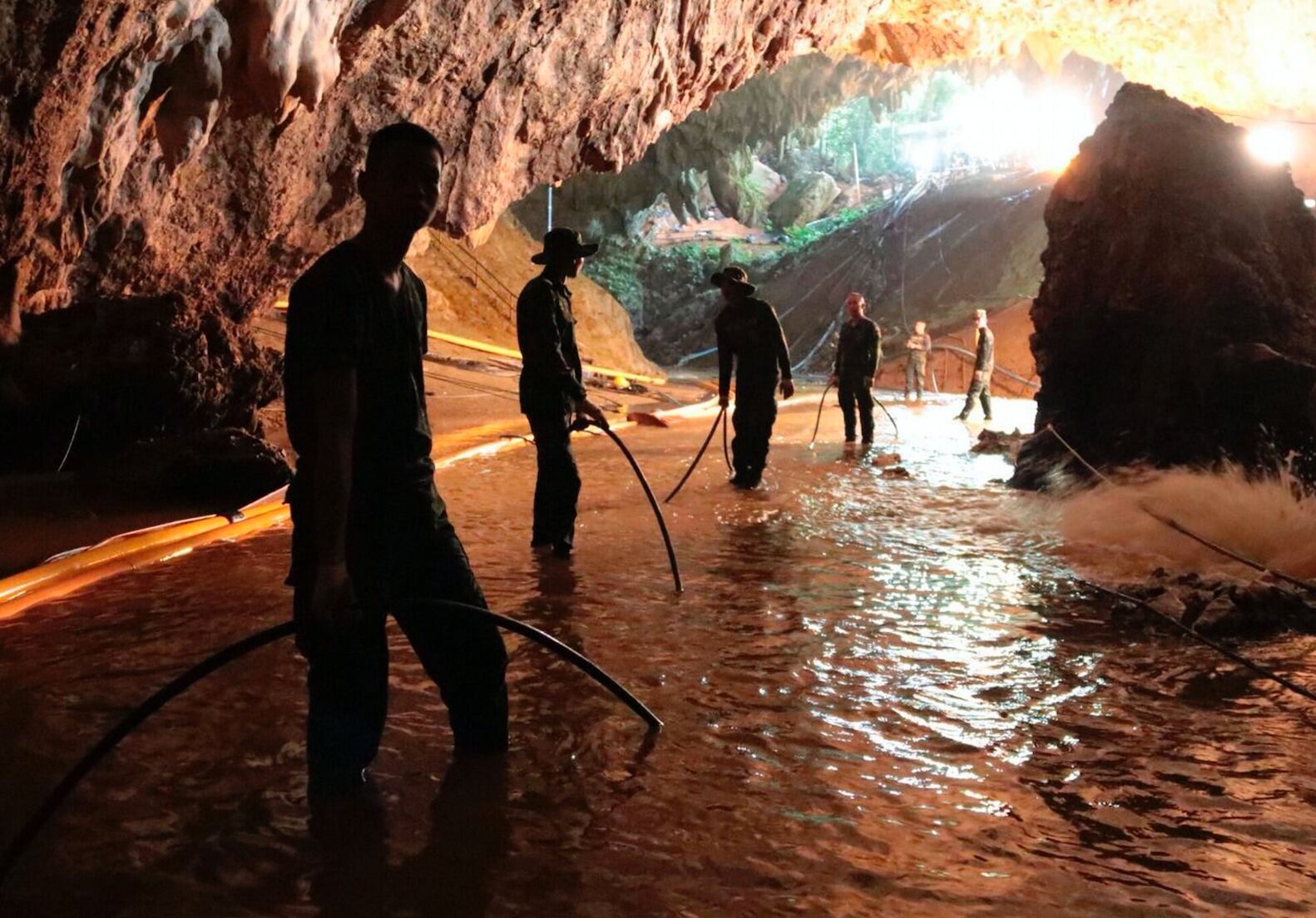 Los funcionarios elogiaron a los buzos tailandeses e internacionales que, de dos en dos, ejecutaron la peligrosa misión de rescate, guiando a los niños que apenas pueden nadar a través de la peligrosa ruta de escape de 4 kilómetros (2,5 millas) de largo que serpentea por la caverna. Para enfatizar el peligro extremo, un ex SEAL tailandés murió el viernes mientras rellenaba los tanques de oxígeno a lo largo de la ruta de rescate.