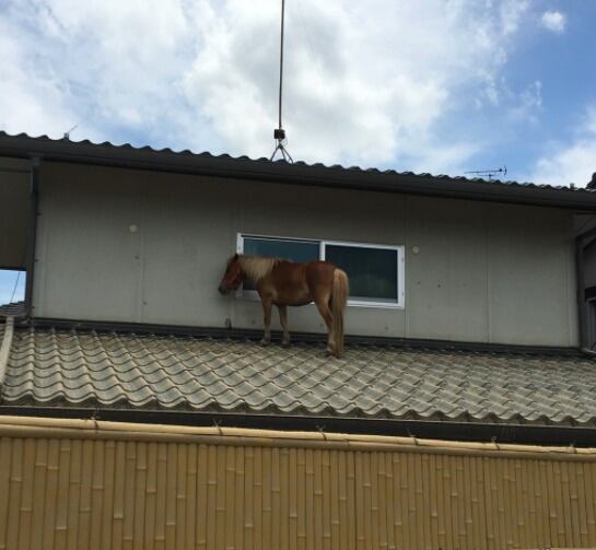 Y es que en la localidad de Kurashiki, Okayama, un extrañO caballito volador dejó boquiabiertos a todos. Reporta el rotativo Japan Times que el pony llamado Leaf, fue bajado del techo de la casa de sus propietarios, por grupos de rescate especializados en buen trato animal.