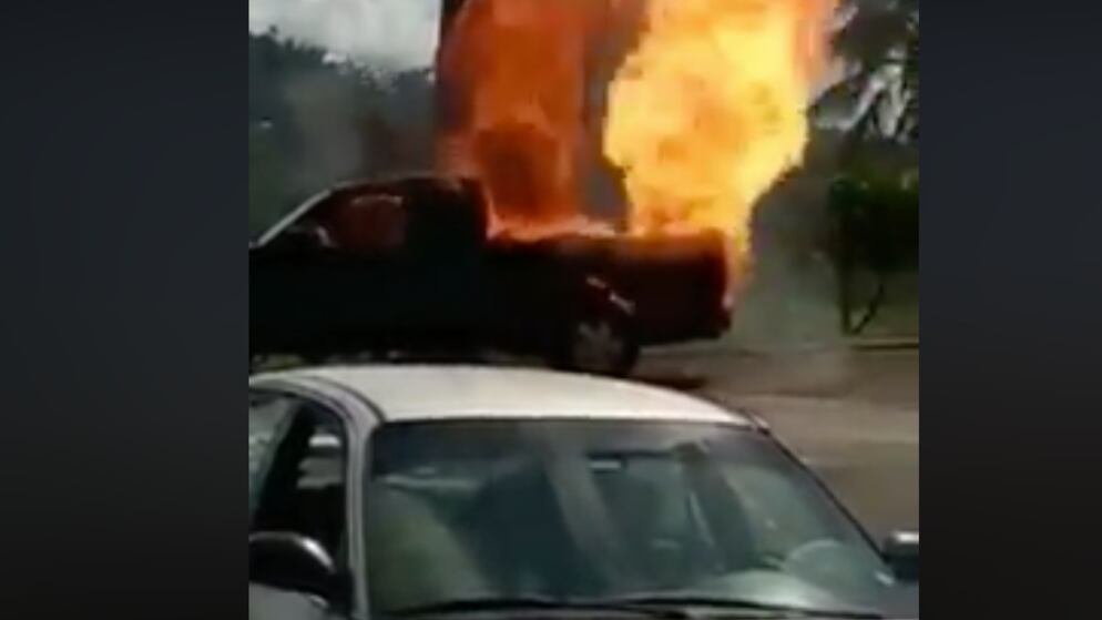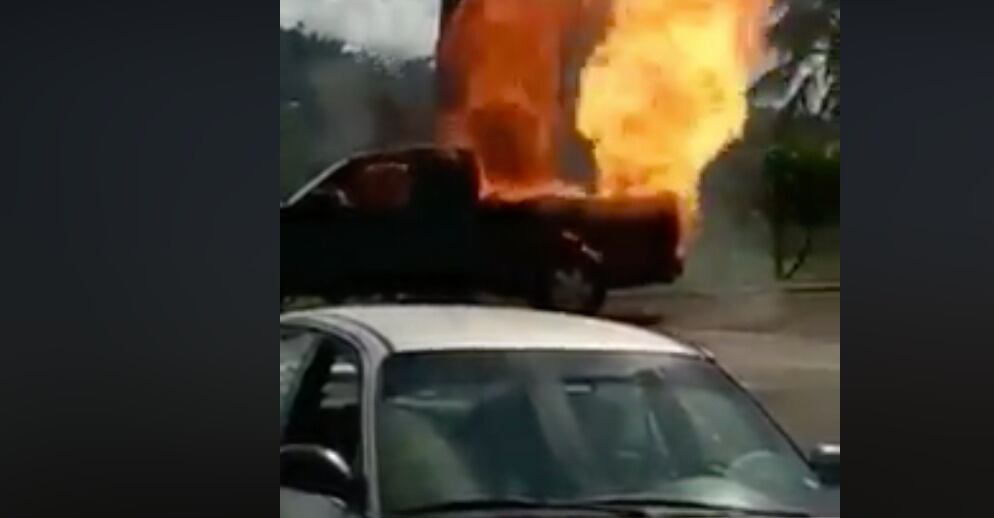Un guagua de carga se prendió en fuego y minutos más tarde explotó, a causa de un tanque de gas.