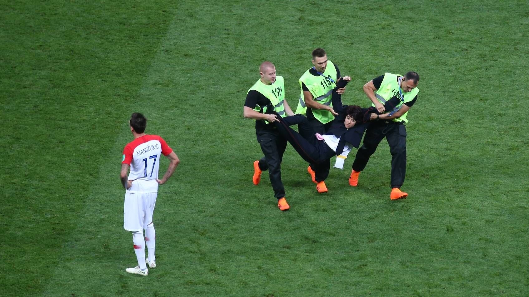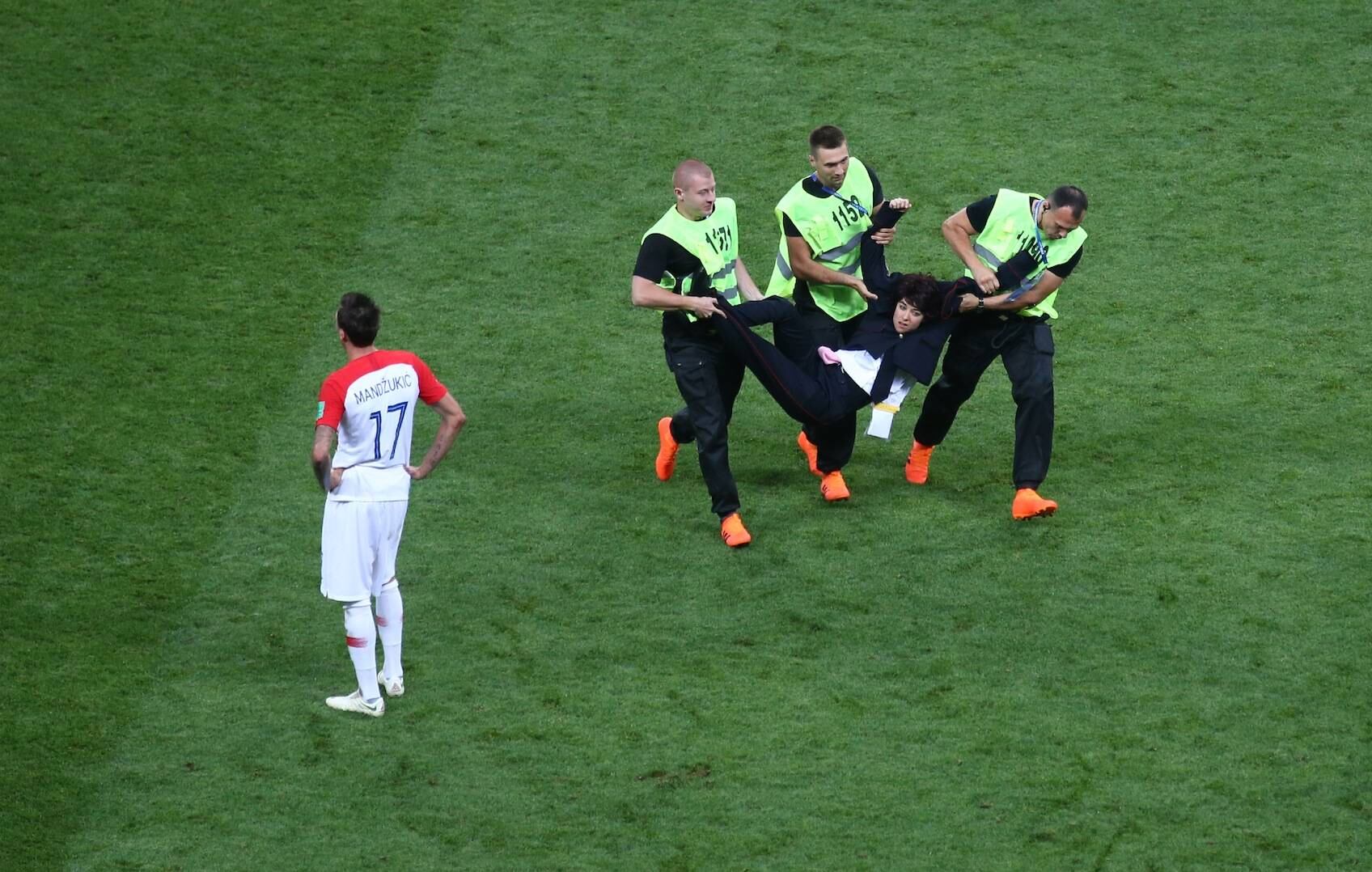 intentos más de espectadores entrando en el campo fueron detenidos después de la protesta de Pussy Riot durante la final. Un francés de 26 años salió corriendo al campo tras el final del encuentro, y durante la ceremonia de entrega de premios apareció un ruso de 32 años con una camiseta que decía ‘Putin’s Time’.