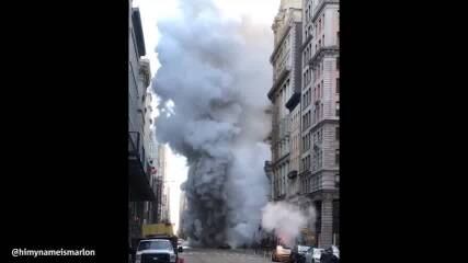 Una explosión de una tubería de vapor ocurrió en el distrito de Flatiron, una explosión que envió un denso humo a través de Manhattan y escupió escombros por todas las calles, convirtiendo el área inmediata en una ciudad humeante cuando se despejó el tráfico.