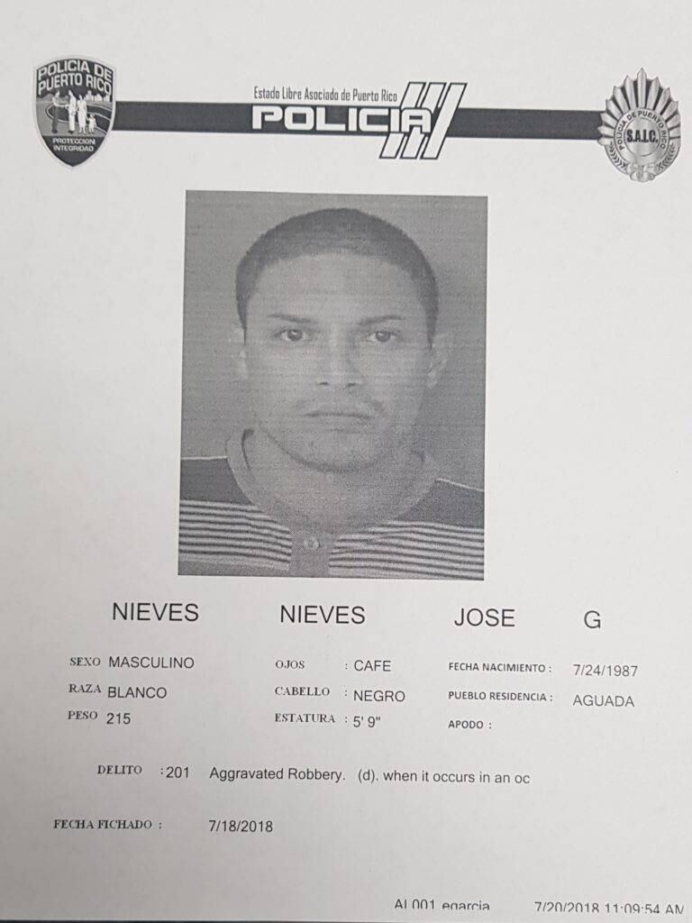 Contra José Nieves Nieves se presentaron cargos por el delito de robo agravado en el Tribunal de Mayagüez.