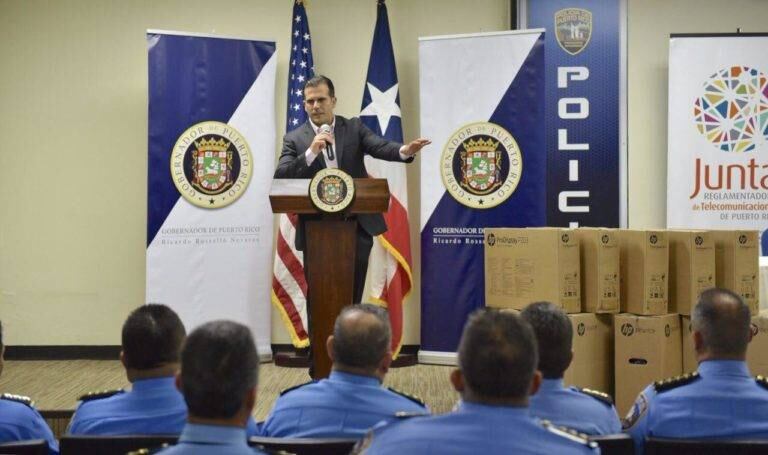 El gobernador Ricardo Rosselló Nevares anunció hoy la entrega de cien computadoras de parte de la Junta Reglamentadora de Telecomunicaciones (JRT) al Negociado de la Policía.