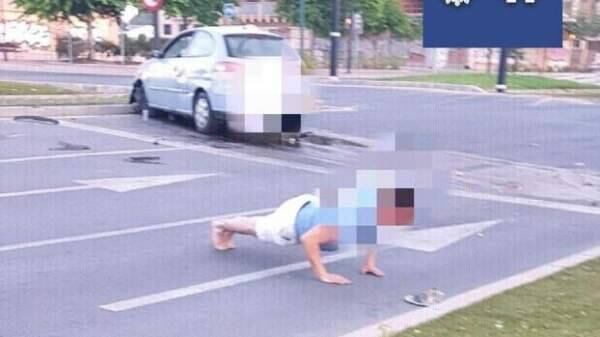 Sin embargo, el conductor no aceptó que se encontraba bajo los efectos del alcohol y sorprendió a los oficiales ya que se lanzó al suelo a hacer flexiones de brazos, esperando que de esta forma podría demostrar que no estaba en estado de ebriedad.