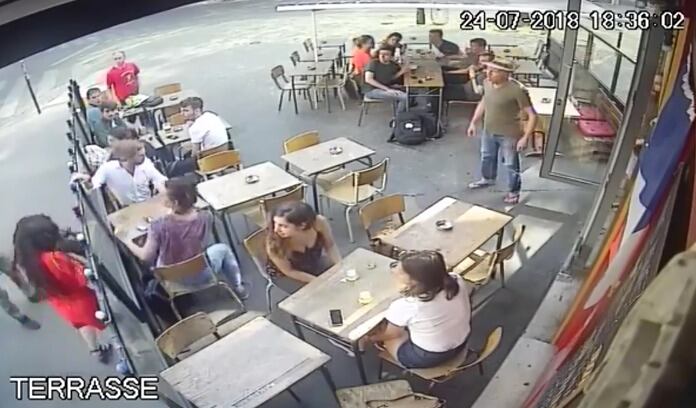 En el video se observa el enfrentamiento, posterior al golpe varias personas que estaban en la terraza del bar enfrentan al tipo, después de hablar el hombre se retira del lugar.